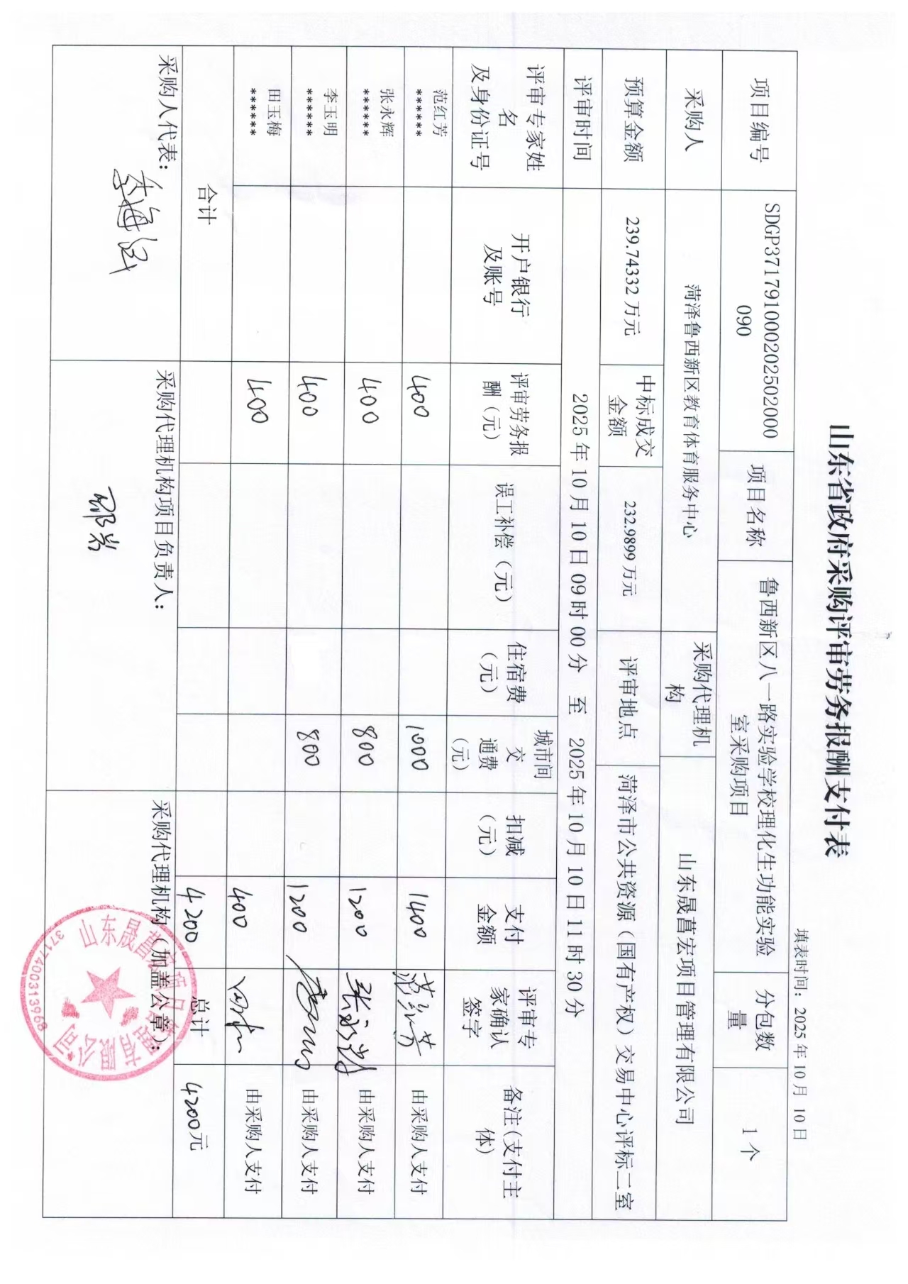 二、项目名称:鲁西新区八一路实验学校理化生功能实验室采购项目